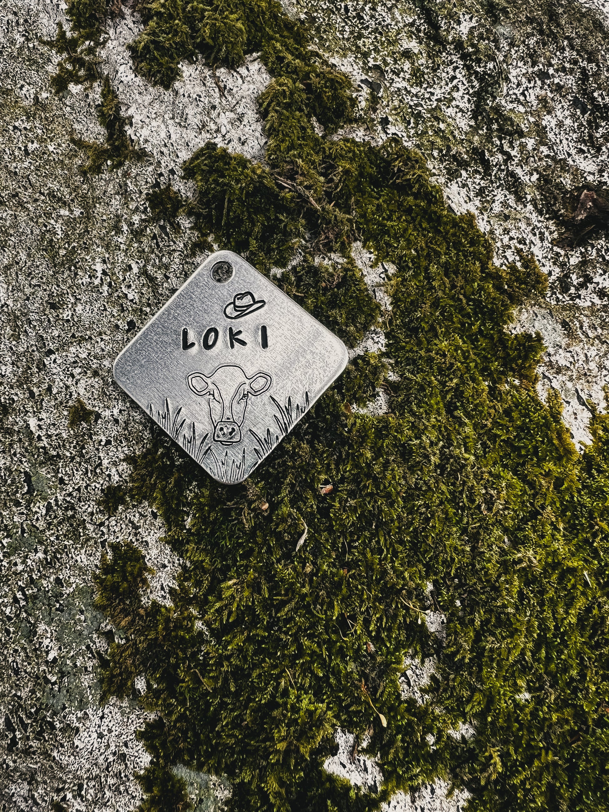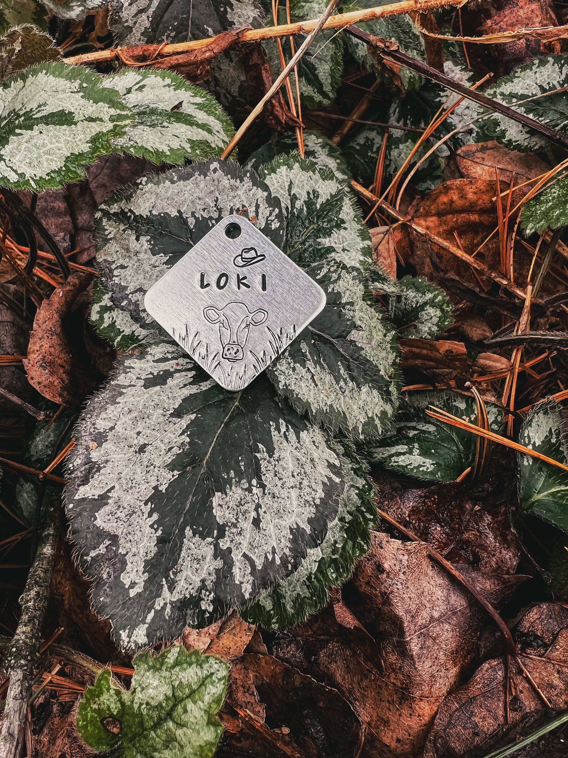 Cette médaille d'identification personnalisée estampée à la main est le complément parfait à la garde-robe de votre animal de compagnie. La médaille d'identité comporte le nom de votre animal , ainsi que le motif de ce modèle sur le devant. Nos différentes tailles le rendent adapté aux chats et aux chiens.