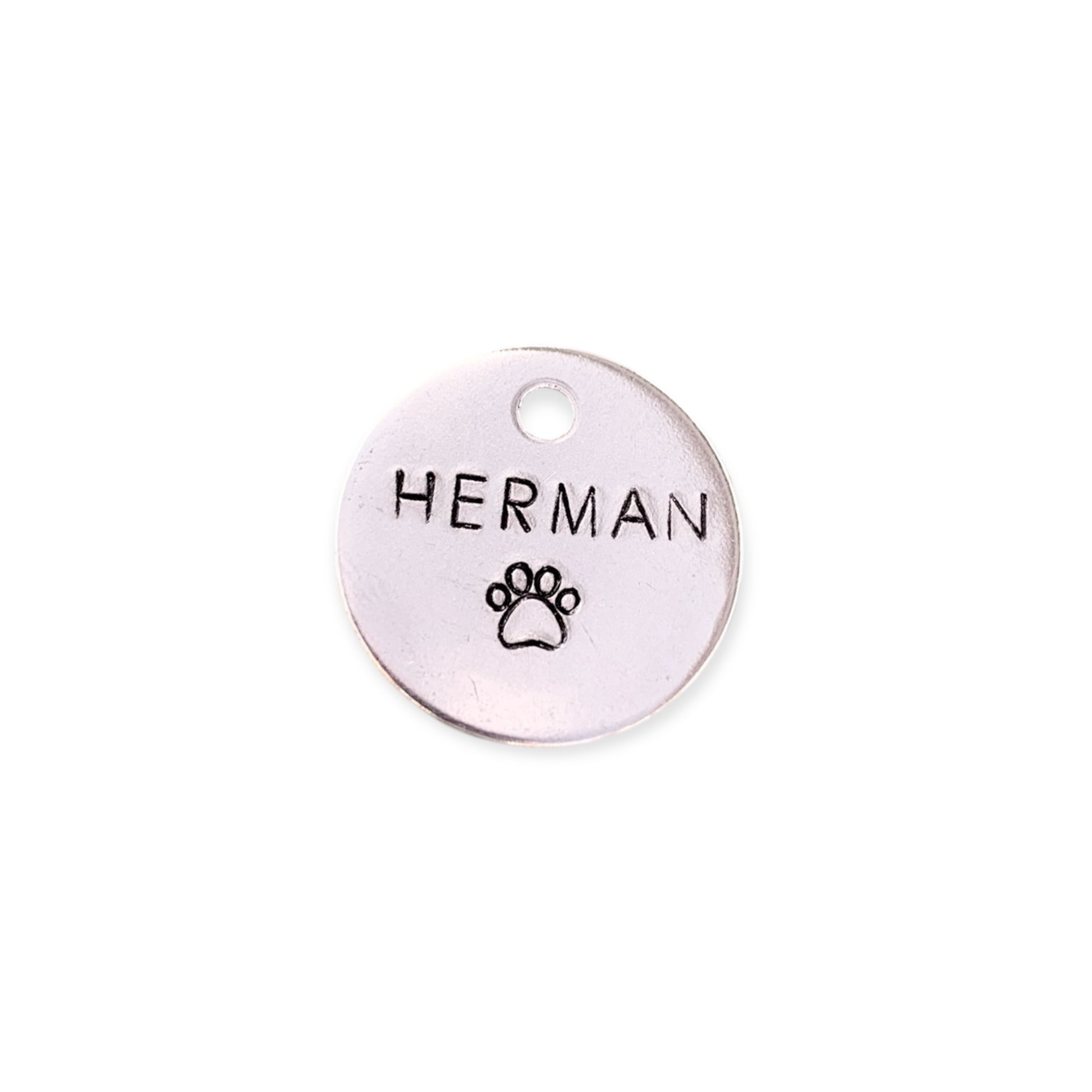 Cette médaille d'identification personnalisée estampée à la main est le complément parfait à la garde-robe de votre animal de compagnie. La médaille d'identité comporte le nom de votre animal , ainsi que le motif de ce modèle sur le devant. Nos différentes tailles le rendent adapté aux chats et aux chiens.